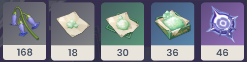 20级突破:生长碧翡碎屑*1、琉璃袋*3、蕈兽孢子*3、摩拉*2万